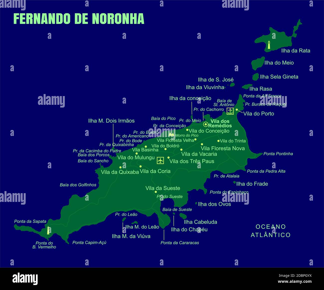 Colorful Fernando de Noronha Island map, Brazil Stock Vector Image
