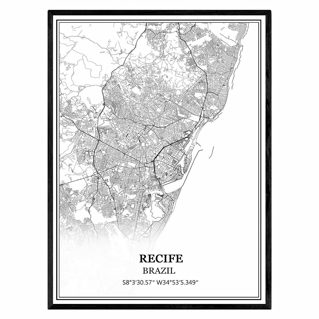 Amazon. TANOKCRS Recife Brazil Map Wall Art Canvas Print